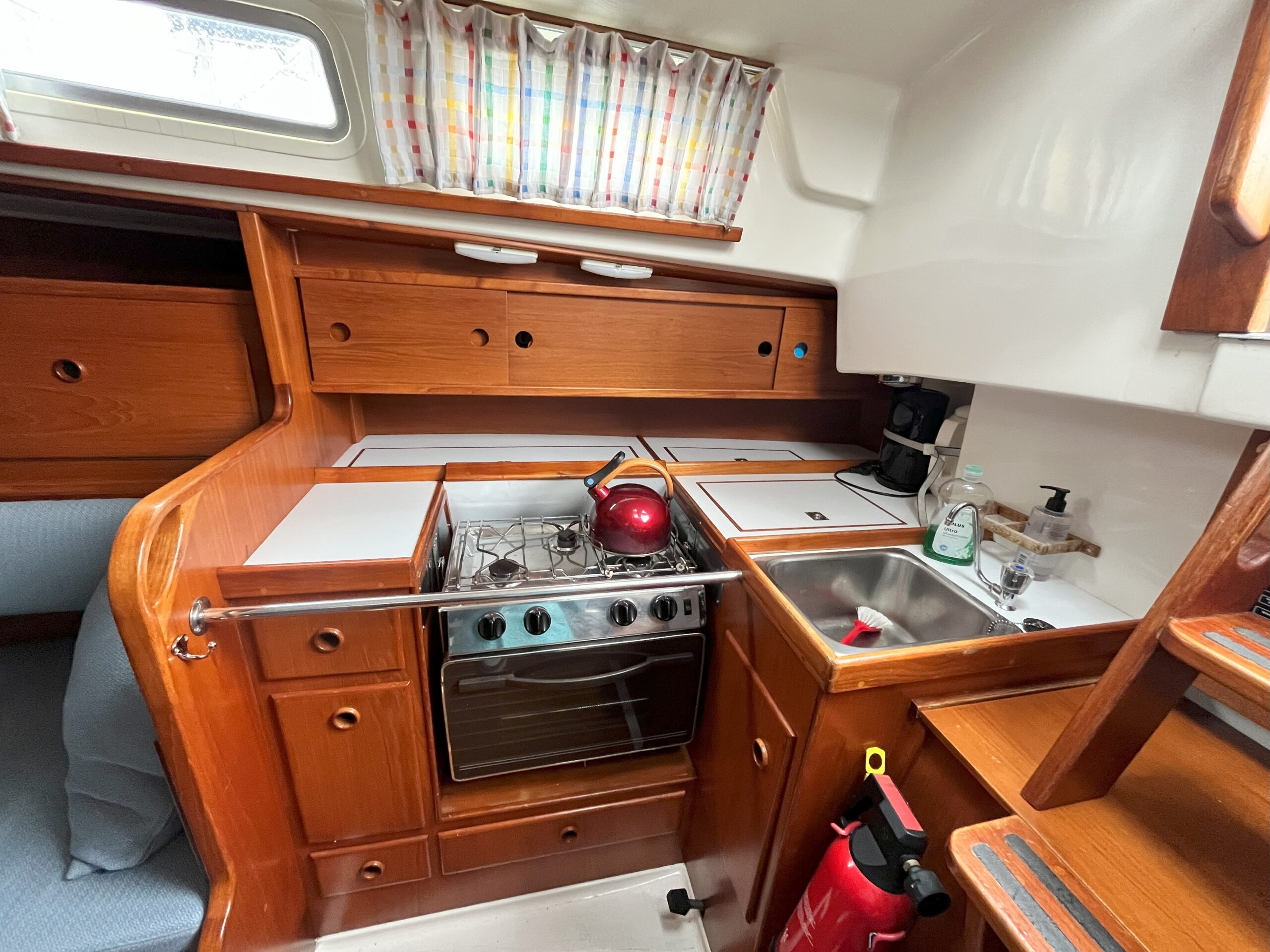 sink, oven, toilet manual, heating (Wallas Marine 2400), hob gas, refrigerator - electric, dishes, cockpit table